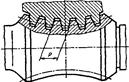 - эвольвентным червяком (ZJ), представляющим косозубое колесо с малым числом зубьев и с большим углом наклона (в торцовом сечении зуб имеет эвольвентный профиль (рисунок 43в).