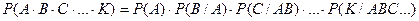 Вероятность произведения конечного числа событий равна произведению вероятностей этих событий, причём вероятность каждого следующего по порядку события вычисляется при условии, что все предыдущие имели место: