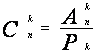 Составим из n элементов всевозможные сочетания по k элементов в каждом. Их будет Cnk. Внутри каждого сочетания, состоящего из k элементов, образуем всевозможные комбинации, учитывающие порядок следования в них элементов. Таких комбинаций будет Pk, т.к. мы в нашем сочетании образовываем перестановки. Всего различных комбинаций из n элементов по k в каждой, отличающихся друг от друга либо составом (элементами), либо порядком их следования, будет Cnk • Pk. Но такие комбинации называются размещениями. Таким образом, Ank = Cnk • Pk, тогда: