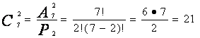 Решение: имеем сочетания без повторений из 7 элементов по 2; их число: