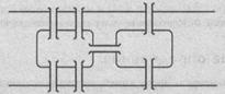 2. Задача о трех домах и трех колодцах. Имеется три дома и три колодца. Провести от каждого дома к каждому колодцу тропинку так, чтобы тропинки не пересекались (рис. 3.2). Эта задача была решена Куратовским в 1930 году.