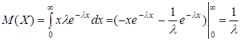 Найдем числовые характеристики показательного распределения.