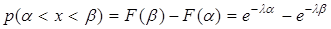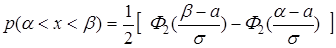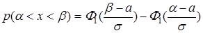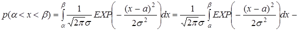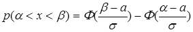 Вероятность попадания в интервал (α, β),