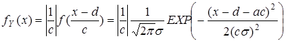 Опишем еще закон распределения линейной функции Y = cX + d нормально распределенной случайной величины Х, где c и d - заданные числа. Случайная величина Y принимает значения на всей числовой оси.