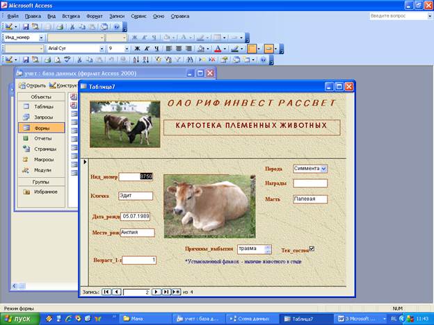 Экранные формы позволяют организовать наглядную и удобную работу с базой данных, состоящей из большого количества связанных таблиц реляционной базы данных.