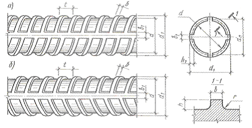 Предпочтение отдают круглому сечению, потому что такая арматура наиболее технологична в изготовлении и не имеет острых углов, врезающихся в бетон и способствующих образованию трещин. Класс такой арматуры обозначают буквой А и римской цифрой в СНиПе 2.03.01-84* «Бетонные и железобетонные конструкции» (чем больше цифра, тем выше прочность), в СП 52-01-2003 – обычными цифрами: