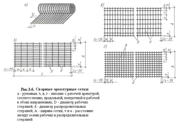 1. Арматурные сетки (обычно с перпендикулярным расположением рабочих стержней).
