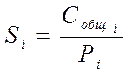 Себестоимость единицы транспортной работы Si равна отношению общей суммы затрат на транспортную работу Собщi к общему объему транспортной работы Рi, т.е.
