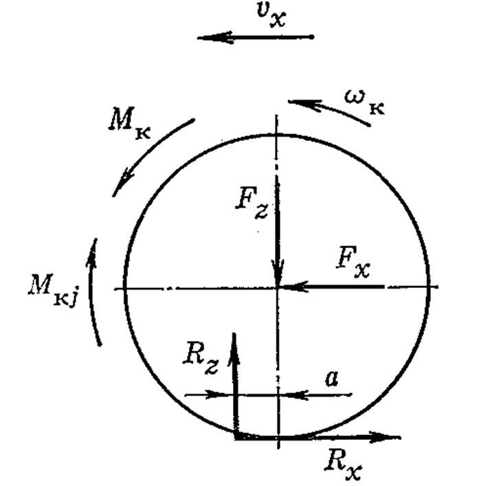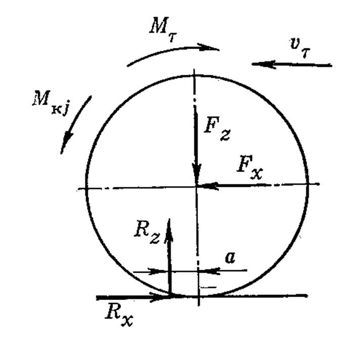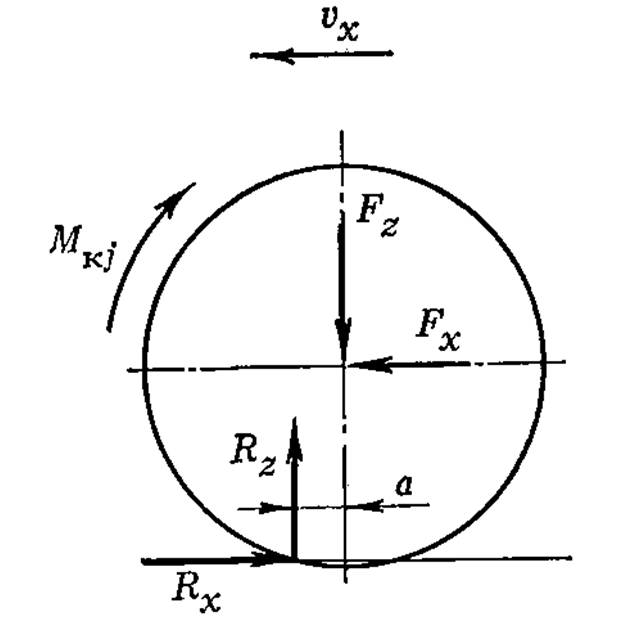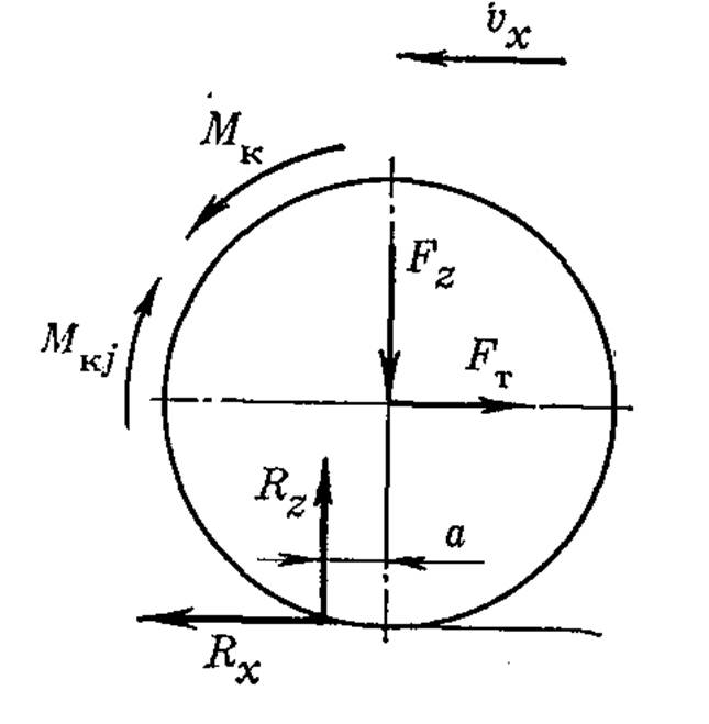 Рисунок 10 – Силы и моменты, действующие на катящееся колесо