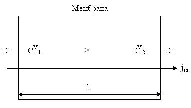 где: CМ1 – концентрация вещества в мембране около одной ее поверхности; CМ2 – около другой; l – толщина мембраны.