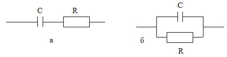 Рис.6.4. Последовательное (а) и параллельное (б) соединение емкостного и обычного сопротивления.
