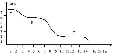 При изучении частотных зависимостей сопротивления и емкости биообъектов было обнаружено три области дисперсии (рис.6.5).