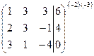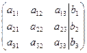 - Составить расширенную матрицу А из коэффициентов при неизвестных со столбцом свободных членов.
