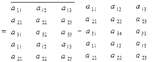 - Если в определителе элементы некоторой строки представлены в виде суммы двух слагаемых, то определитель равен сумме двух определителей, где в первом определителе на месте этой строки записаны первые слагаемые, а во втором-вторые слагаемые.