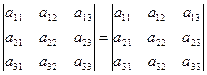 - Определитель не изменяется, если его строки заменить столбцами, не меняя их порядок.