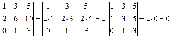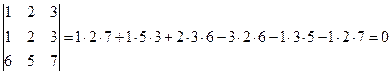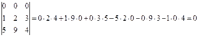- Если в определителе содержится две пропорциональные строки, то он равен нулю.