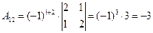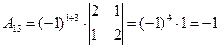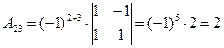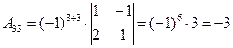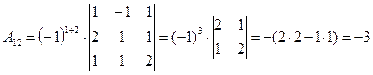 Алгебраическим дополнением Аij элемента аi j… квадратной матрицы n – ого порядка называется определитель матрицы (n-1)-ого порядка, полученной из матрицы А вычеркиванием i-й строки и j-го столбца, взятый со знаком (-1)i+j