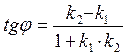 k1, k2 – коэффициенты прямых l1 и l2, φ- угол между этими прямыми