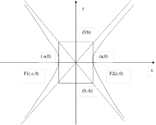 Фокусы гиперболы могут лежать как на оси Ох, так и на оси Оу, тогда ее уравнение примет вид: