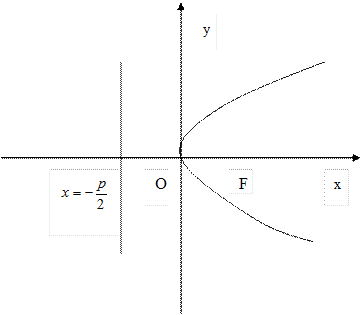 Уравнение параболы с вершиной в начале координат, осью симметрии которой служит ось Ох и ветви направлены влево: у2= - 2рх,