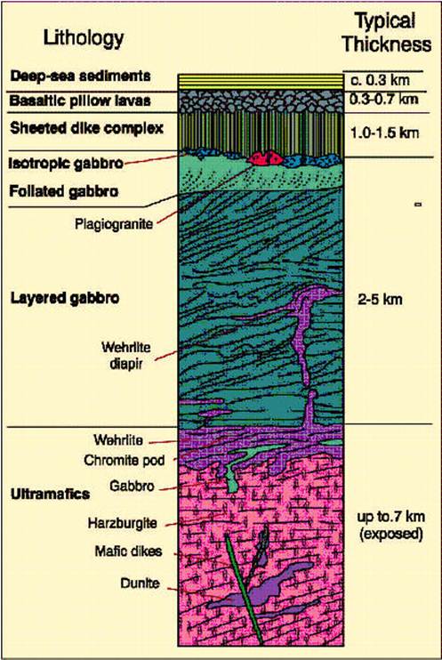 Классический разрез офиолитовой ассоциации приведён на рисунке: