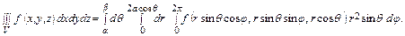 В сферических координатах r, φ, θ область V имеет вид V = {0 ≤ r ≤ 2 a cos θ, 0 ≤ φ ≤ 2 π, α ≤ θ ≤ β }.