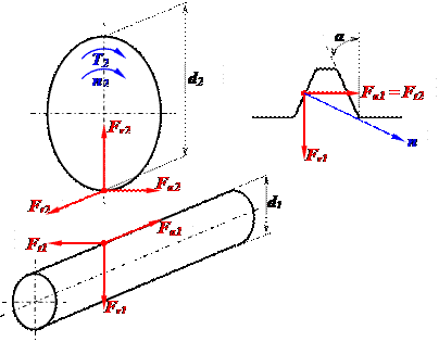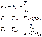 При расчёте принимают, что сила приложена в полюсе зацепления по нормали к рабочей поверхности винта.