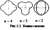 Под наружным давлением находятся вакуумные аппараты, корпуса аппаратов с рубашками. Тонкостенные обечайки под действием наружного давления могут потерять первоначальную форму (устойчивость) с образованием нескольких волн смятия (рис.2.2.). Давление, при котором оболочка начнет деформироваться называется критическим.