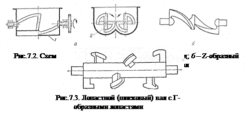 Смесители с вращающимися лопастными рабочими органами (рис.7.2) применяются не только для смешения сухих твердых материалов, но также для приготовления густых и вязких кашеобразных и тестообразных масс и паст.