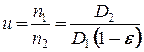 В результате неизбежного при работе фрикционных передач упругого скольжения ведомый каток отстаёт от ведущего и точное значение передаточного числа будет определяться по формуле