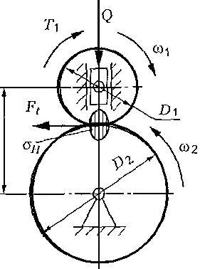 Таким образом, проектные и проверочные расчеты фрикционных передач проводят из условия обеспечения контактной прочности рабочих поверхностей катков.