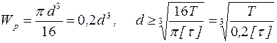 1. Определяют наименьший допустимый диаметр вала из условия прочности на кручение: