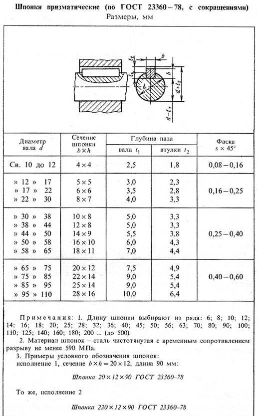 Значения b, h, t1, t2- назначают по таблицам ГОСТ в зависимости от диаметра вала d.
