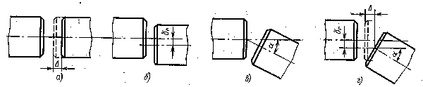 Смещения валов могут быть осевыми D, радиальными dr, угловыми a и комбинированными D, dr, a (рис.10,2).