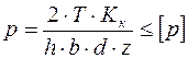 [ p ] – допускаемое давление, [ p ] = 12…15 МПа.