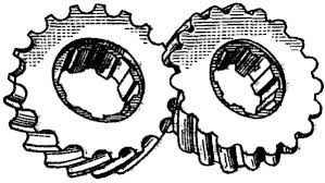 б) Передачи с зацеплением Новикова – встречаются редко (достоинство – меньше контактные напряжения чем в эвольвентной ЗП; недостаток – сложность изготовления)