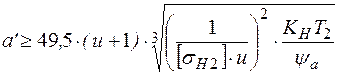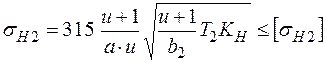 - допускаемое контактное напряжение для материала ведомого зубчатого колеса (зависит от материала и вида термообработки);