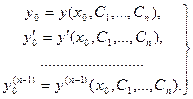 2). Для начальных условий: y 0, , ,…, в точке (x 0, y 0) можно определить все С 1 ,С 2,…, С n, обеспечивающие выполнение начальных условий.
