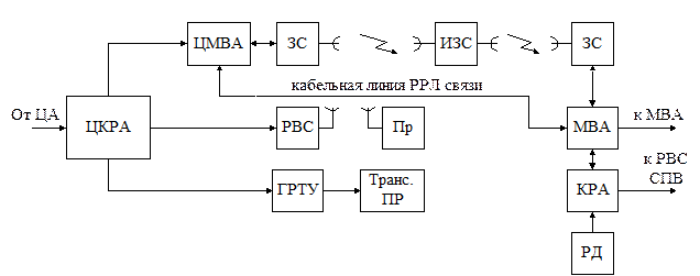 Магистральный канал ЗВ образуют ЦМВА, кабельная, радиорелейная или спутниковая системы связи и МВА областного центра. Спутниковая система связи состоит из двух земных станций и искусственного спутника земли – ретранслятора.