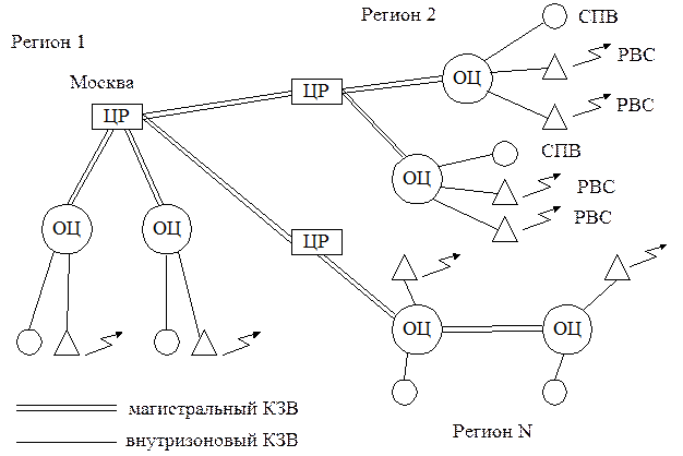 Региональный принцип построения сети распределения программ ЗВ (радиально-узловой).