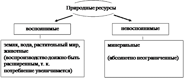 | Природные ресурсы (ПР) – элементы и силы природы, которые могут быть использованы в производственных и непроизводственных сферах деятельности | |