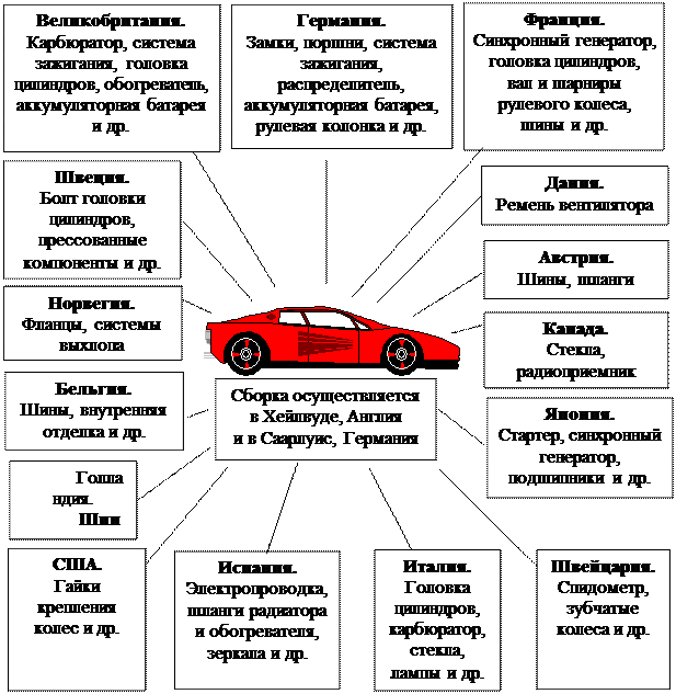 Графический анализ экономических эффектов прямых инвестиций Рис. 15-4 Сеть изготовления комплектующих и самого автомобиля «Форд-Эскорт» для Европы | Вопрос 4. Свободные экономические зоны | | Создание и функционирование свободных (специальных) экономических зон (СЭЗ) – одна из форм привлечения иностранного капитала | | История СЭЗ | Эта форма используется с XIV в. в виде «свободных» городов и портов для привлечения торговых потоков | | СЭЗ – сравнительно небольшие территории государства, на которых вводится льготный, по сравнению с общим, режим хозяйственной и внешнеэкономической деятельности с целью привлечения иностранных и отечественных инвесторов и создается вся необходимая для этого производственная и деловая инфраструктура. | | СЭЗ –часть территории (экономического пространства) государства с особым, льготным режимом хозяйственной, инвестиционной деятельности. | | Общее для СЭЗ | – локальность; – отсутствие или низкие таможенные тарифы (ТТ= 0); – низкие налоги; – свободное обращение иностранных валют; – гарантии от конфискации собственности | | | | | | | Основные модели свободных зон: типовые размеры и состав льгот | | Виды свободных зон | Размеры (кв. км) | Наличие таможенной границы | Базовые льготы | Основные регионы/страны распространения | | | Зоны свободной торговли | до 3–5 | обязательно | таможенные | Крупные транспортные узлы в развивающихся и развитых странах | | | Промышленно-производственные: а) точечные б) промпарки | до 1–2 | отсутствует | таможенные | Бразилия, Мексика, Пуэрто-Рико, Филиппины, Карибский бассейн | | | 0,1–0,5 1–20 | не обязательно | таможенные | ЮВА, Мексика | | | Торгово- производственные | 1–4 | обязательно | таможенные | США | | | Зоны малого бизнеса | 0,01–3 | отсутствует | финансовые, налоговые | Индия, Ближний Восток, Аргентина, Франция | | | Технико-внедренческие (научно-производственные) | 2–20 | не обязательно | налоговые | НИС Юго-Восточной Азии | | | Оффшорные финансовые центры | 0,05–0,1 | отсутствует | налоговые | Карибский бассейн, Гонконг, Сингапур | | | Комплексные: а) специальные экономические б) территории особого режима типа зоны «Манаус» | 16–330 | обязательно | таможенные, налоговые, финансовые | КНР | | | 2 200 000 (льготируется до 10 000) | обязательно для части зоны | таможенные, налоговые, финансовые | Бразилия («Манаус»), Аргентина («Огненная земля») | | | | | | | | | | | в) особые экономические зоны | в пределах адм.-терри-ториальных образований (город, район) | обязательно для отдельных локальных зон, находящихся на территории особой зоны | налоговые, таможенные, финансовые | Россия (Калининградская обл., проекты для других территорий) | | Особым видом свободных экономических зон являются оффшорные зоны, в которых действует льготный режим для нерезидентов. | | Оффшорная зона (оффшорный финансовый центр) – территория или страна, законодательство которой разрешает регистрацию и функционирование оффшорных компаний, т.е. компаний, извлекающих прибыль из источников, действующих вне страны или территории их регистрации. | | Off – shorе – «за берегами», т.е. за рубежами страны, оказание иностранным инвесторам услуг по льготам налогов, финансов – «налоговые гавани», с целью привлечения иностранного капитала (обычно имеют выгодное географическое расположение). | | Преимущество оффшорного бизнеса для предпринимателей | Конфиденциальность владения через ус
