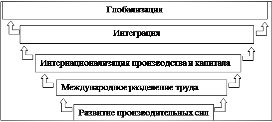 | Движение по всему миру гигантских потоков капитала, товаров, людей, технологий, информации характеризует современную МЭ и «глобализацию». Если интеграцию можно представить как сближение хозяйственных механизмов стран, то глобализацию – как глубокие интенсивные изменения системы МЭО, особенно с появлением новых транспортных и телекоммуникационных технологий.