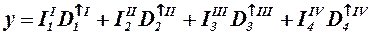 где y – выходной сигнал защиты; I – сигнал от токовых измерительных органов защиты; D – оператор временной задержки; I, II, III, IV – верхние индексы, обозначающие номер ступени; 1, 2, 3, 4 – нижние индексы, соответствующие им параметры срабатывания.