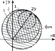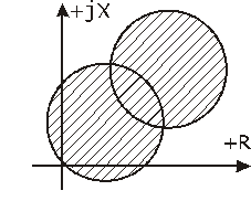 Самая простая дистанционная защита – ненаправленная (называемая «реле полного сопротивления»), имеющая круговую характеристику, с центром в начале координат (рис. 4.2,а), причем заштрихованная область внутри окружности является областью срабатывания. В отличие от обычной токовой ненаправленной защиты она имеет то преимущество, что использует дополнительный параметр – напряжение, которое при КЗ также изменяется, повышая чувствительность защиты. Реле с такой характеристикой обычно используется в сетях 6‑35 кВ. Круговая характеристика (рис. 4.2,б), проходящая через центр координат, является направленной, так как величина сопротивления срабатывания изменяется в зависимости от угла вектора сопротивления. Часто такая характеристика используется в первых (рис. 4.2,б ― окружность 1) и во вторых (рис. 4.2,б ― окружность 2) ступенях дистанционной защиты.