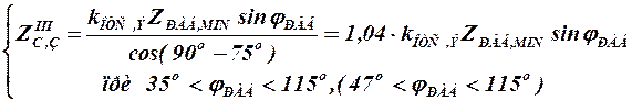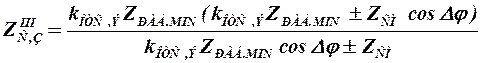 Сопротивление срабатывания. Аналогично токовым защитам третья ступень дистанционной защиты отстраивается от наиболее тяжелого рабочего режима (сопротивление при этом наименьшее):