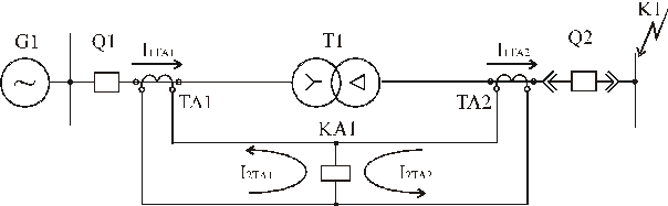 Принцип действия [22] основан на вычислении разности токов I1,TA1 и I1,TA2, протекаемых через трансформаторы тока TA1 и TA2 (рис. 6.2) соответственно.