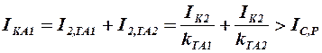 Во втором случае через реле протекает ток КЗ одного трансформатора тока и равен: