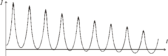 Естественно, что при такой индукции трансформатор войдет в глубокое насыщение и будет размагничиваться от нескольких периодов до нескольких десятков периодов промышленной частоты. При этом в трансформаторе будет протекать ток с большой апериодической составляющей с явно выраженными характерными «острыми» максимумами (рис. 6.4).