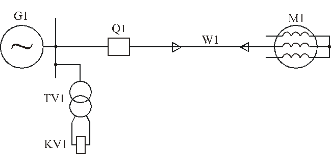 При групповом запуске или самозапуске понижается напряжение на шинах, у двигателей повышается потребляемый ток, дополнительно снижается напряжение, что приводит к увеличению времени самозапуска. Для предотвращения работы двигателя при глубоком снижении напряжения предусматривается защита от понижения напряжения (рис. 7.5). В качестве измерительного органа защиты используется реле напряжения.